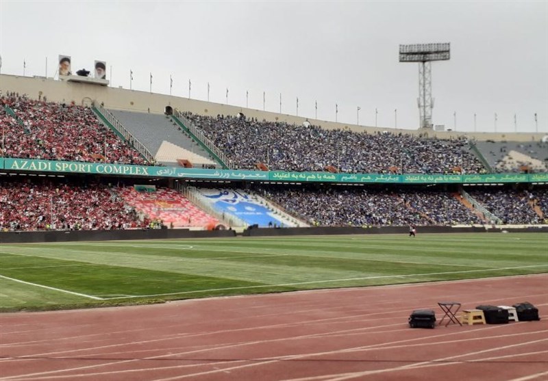 * سکوهایی که در دست تعمیر هستند، نمای زشتی به ورزشگاه آزادی دادهاند.