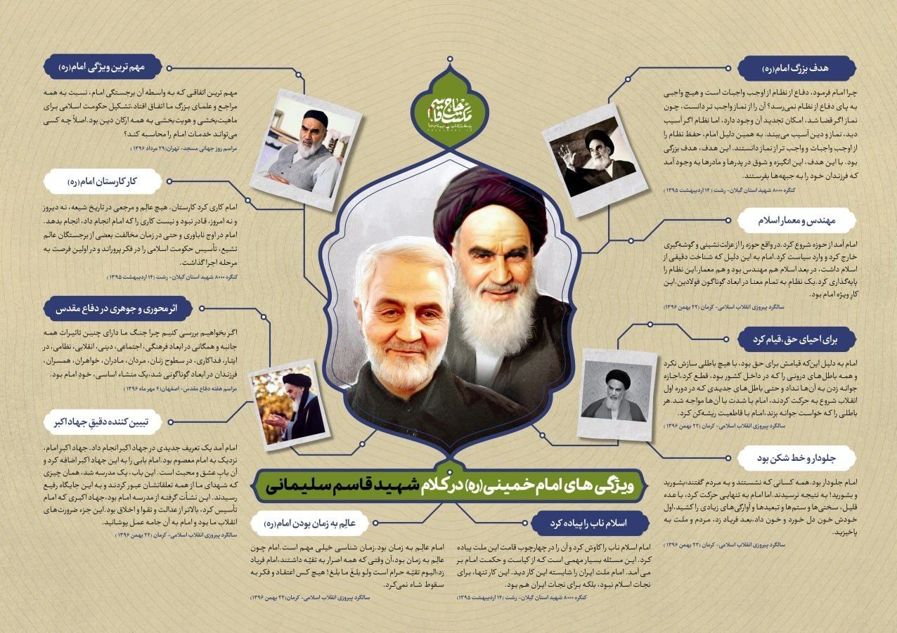 شهید قاسم سلیمانی در بخشی از سخنرانیهای خود نکات مهمی را درباره امام خمینی (ره) بیان کردهاند که بخشی از آنها به مناسبت سالروز ارتحال امام خمینی بیان میشود.