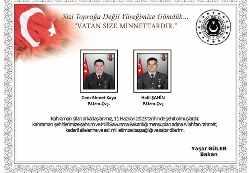 جم احمد کایا و خلیل شاهین، دو نظامی دو نظامی ترکیه هستند که مجروح شده بودند اما بر اثر شدت جراحت جان خود را از دست داده اند.