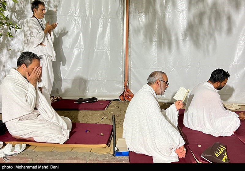 زائران ایرانی پس از رسیدن به صحرای عرفات طبق برنامهریزی قبلی در چادرهای خود مستقر شدند، در این بین برخی زائران با حضور در محوطه باز چادرها به راز و نیاز با خدا پرداختند.