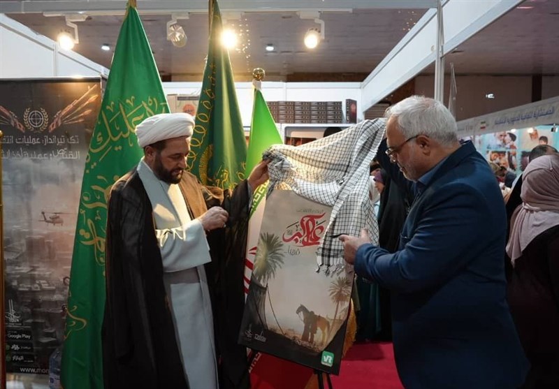 در این مراسم شیخ محمد البیضانی رییس برگزاری نمایشگاه و مدیر شبکه تلویزیونی شهاب عراق، دهقان مدیرعامل موسسه فرهنگی هنری رزمندگان اسلام جمهوری اسلامی ایران و مهدی جعفری جوزانی مدیرعامل موسسه منادیان بصیرت حضور داشتند.