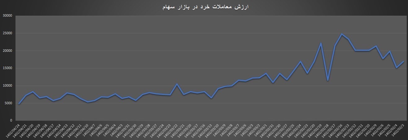 این در حالی است که ارزش معاملات بازار سرمایه در اردیبهشت ماه بالای 20 هزار میلیارد تومان بود و در بعضی از روزها حتی به نزدیکی ها ی 25 هزار میلیارد تومان هم رسیده بود.