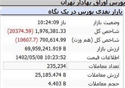 به گزارش خبرنگار اقتصادی خبرگزاری تسنیم، بازار سهام همچنان در روند ریزشی قرار دارد و همچون هفته های گذشته همچنان پرعرضه آغاز به کار کرد. گفتنی است شاخص کل بازار سهام تا کنون که حدود 90 دقیقه از شروع بازار گذشته شاخص کل با ریزشی 20 هزار واحدی به ارتفاع 1 میلیون و 976 هزار واحد رسیده است. همچنین شاخص هم وزن با ریزشی 10 هزار واحدی به شاخص 700 هزار واحد رسیده است.