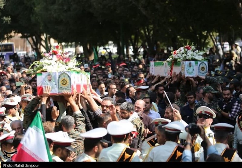 مردم شهیدپرور اصفهان این بار برای شهدای مدافع امنیت خود گرد هم آمدند و با شعارهای "لبیک یا حسین(ع)"، "این گل پرپرشده هدیه به رهبر شده"، "مرگ بر آمریکا" و همچنین با قرائت قرآن و نوحه شهیدان حسینزاده احمدی و شفیعی را بهسمت گلستان شهدای اصفهان بدرقه کردند.