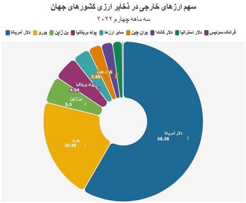 بر اساس گزارش انجمن معاملات مالی بین بانکی در سراسر جهان، دلار آمریکا همچنان برای انجام 42 درصد از معاملات ارزی استفاده میشود. سهم یورو هم 32 درصد است که در خارج از اروپا و بخشهایی از شمال آفریقا چنین سهمی ندارد. یوان چین حدود 2 درصد سهم دارد. اما باید ورای این آمار توجه کرد دلار آمریکا روزهای خوبی را سپری نمیکند. بحران بانکی و افزایش نرخ تورم موجب سیر صعودی نرخ بهره در این کشور شد و در چنین شرایطی، به نظر میرسد که بیمیلی کشورها به ذخایر دلاری نیز در حال افزایش است. به طوری که مطابق آمار رسمی، عربستان سعودی طی دو سال گذشته سهم خود را از اوراق خزانهداری ایالات متحده با 35.2 درصد کاهش از 184.4 میلیارد دلار به 119.4 میلیارد دلار رسانده است.