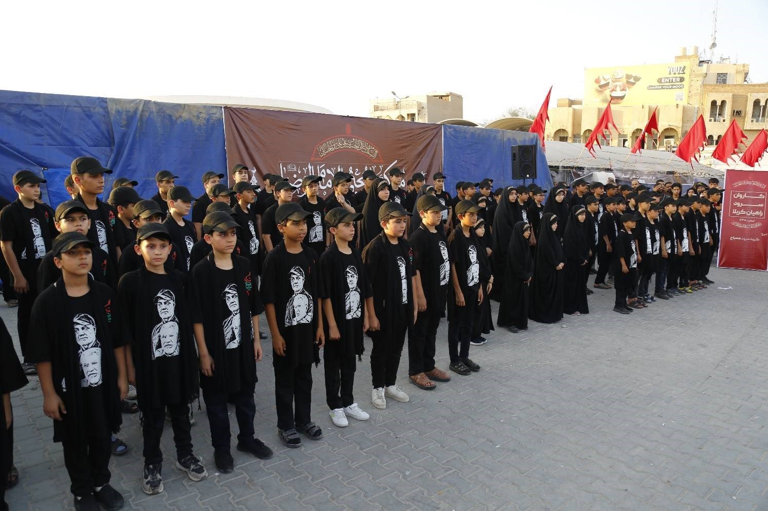 سرودخوانی نوجوانان ایرانی در مسیر پیاده‌روی اربعین/ اجرای 150 نفره در کربلا + فیلم و عکس