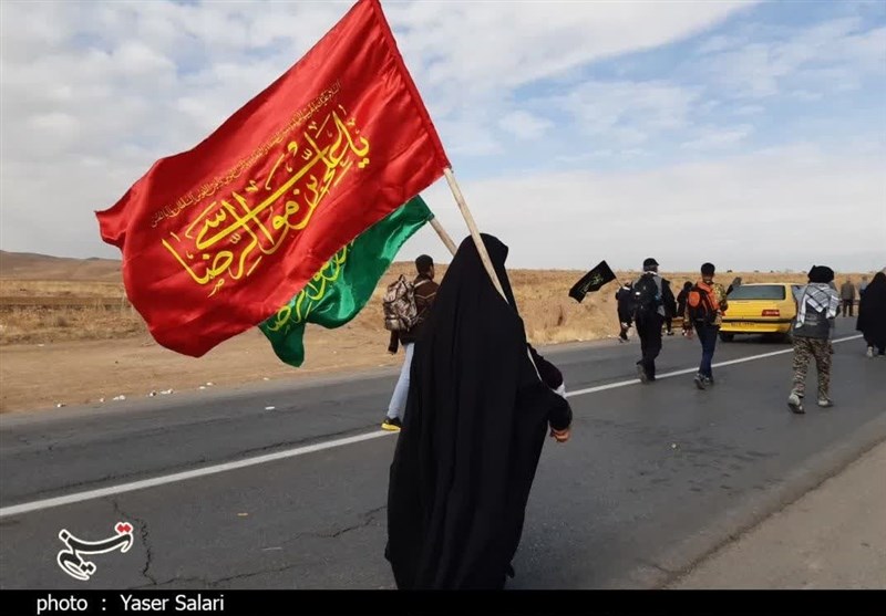 یکی بیشتر از 20 روز در راه است، دیگری چند ساعت. مهم آن است که راه دور، گرما و سرما مانع از این عشقبازی نمیشود. مسیر هر ساله هیچ گاه تکراری نمیشود. پرچمهای رنگین مزین به نام فرزندان زهرا(س) بر دوش زائران پیاده، روح میبخشد به هر ریگ، سنگ و جاده. باید گفت این جا مسیری است که غبار بر چهرهها نشسته، لباسهای خاکی و پای تاول زده زیباست. در این هارمونی کم نظیر، اندوه و شوق به هم آمیخته است.