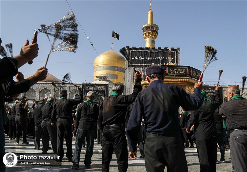 روز عزای علی ابن موسی الرضاس و بارگاه منورش در ازدحام حضور عاشقانش، جای سوزن انداختن نیست.دسته های عزاداری از گوشه و کنار ایران، در صحن های حرم حضور دارند که در رثای ثامن الحجج(ع) گوشه گوشه حرم غرق ماتم است.