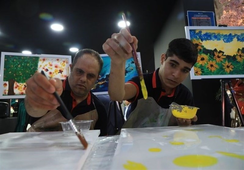 هنرمندی معلولان در حاشیه نمایشگاه ایران پلاست/ فعالان پتروشیمی خریدار نقاشی ها شدند