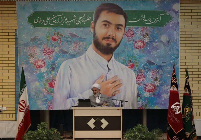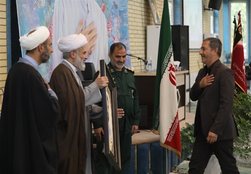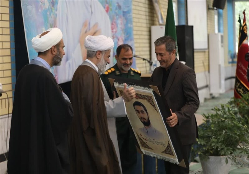 در این مراسم از پدر طلبه شهید مدافع امنیت آرمان علی وردی با تقدیم تابلو فرش تمثال شهید تجلیل شد.