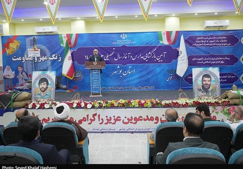 در آیین نواخته شدن زنگ مهر و مقاومت در مدرسه استثنایی دوستان، استاندار بوشهر با تبریک سال تحصیلی جدید، گرامیداشت هفته دفاع مقدس و آغاز ولایت و امامت حضرت ولی عصر (عج) جایگاه آموزش و پرورش در جامعه را بسیار مهم و اثرگذار خواند و اظهار داشت: از میان دستگاههای اجرایی استان بوشهر، آموزش و پرورش مهمترین دستگاه محسوب میشود چراکه آینده نظام اسلامی و پیشرفت جامعه در کلاسهای درس محقق میشود.