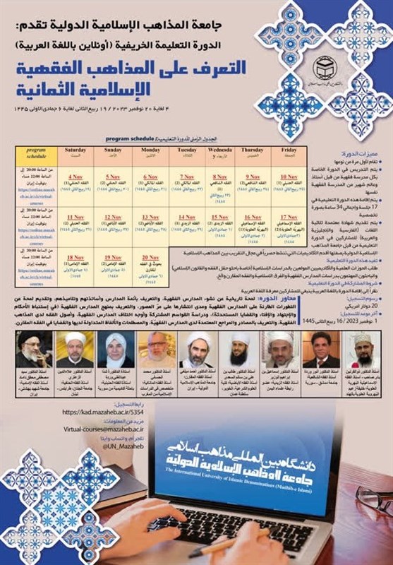 نخستین مدرسه پاییزه بین‌المللی مجازی آشنایی با مذاهب فقهی هشتگانه اسلامی در دانشگاه بین المللی مذاهب اسلامی به زبان عربی برگزار می‌‌شود.