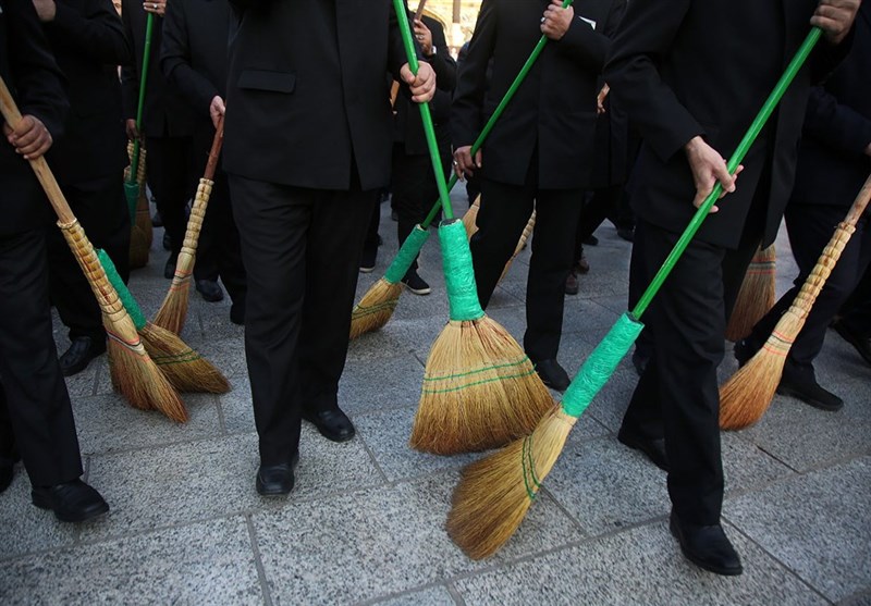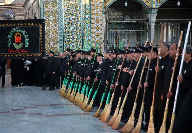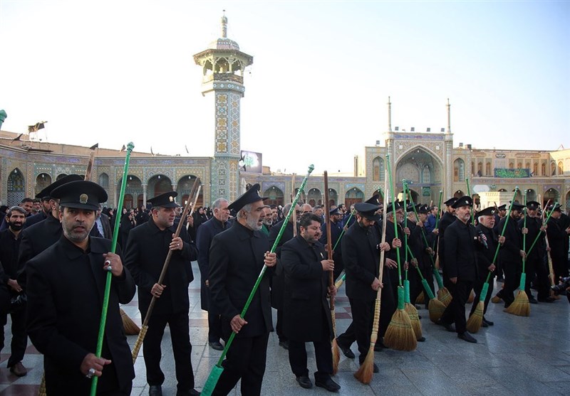 مراسم جاروکشی خادمان حرم مطهر امام رضا(ع) به مناسبت سالروز شهادت حضرت معصومه(س)‌ در صحن امام رضا(ع) حرم بانوی کرامت برگزار شد.