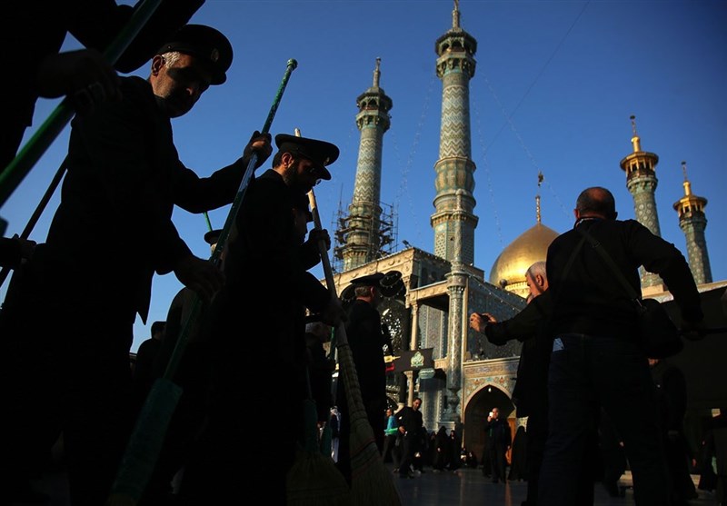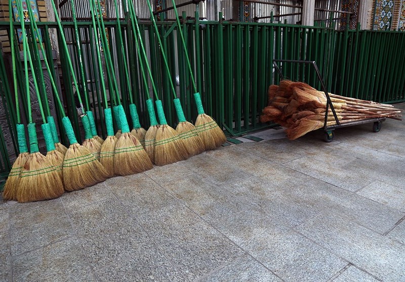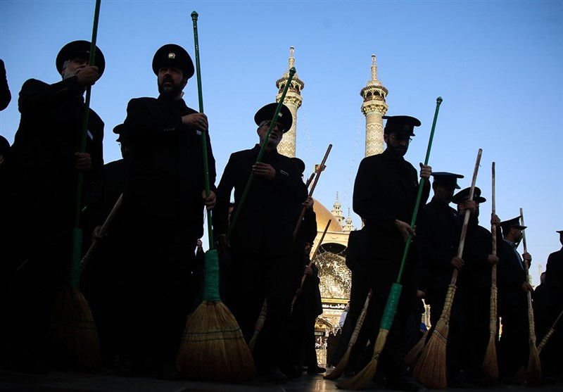 جاروکشی خادمان در حرم حضرت معصومه(س) + تصاویر