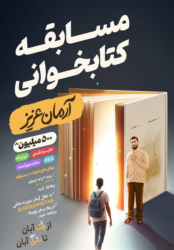 علاقمندان میتوانند تا آخر آبان در مسابقه کتابخوانی آرمان عزیز شرکت کنند و از هدایای آن بهره مند شوند.