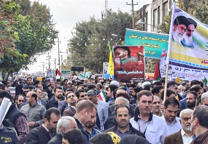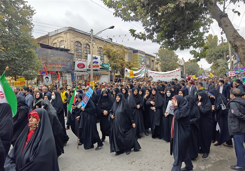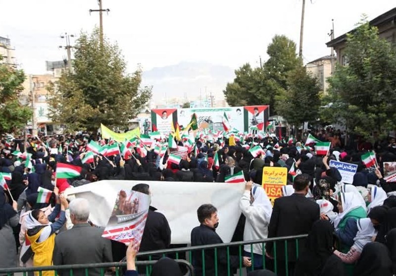 حماسه حضور کرمانشاهیان در یوم‌الله 13 آبان/ طنین فریاد‌‌ «مرگ بر آمریکا» و «مرگ بر اسرائیل» + فیلم