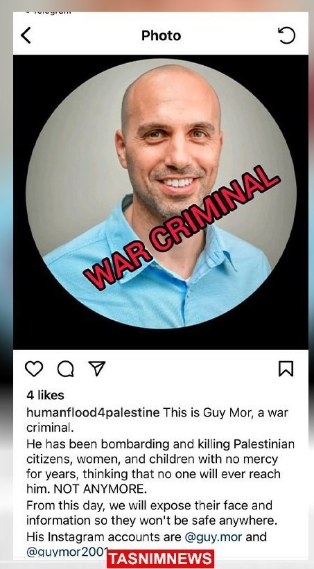 این اکانت نوشته است: این تصویر گای مور، یک جنایتکار جنگی است. او سالهاست که بدون هیچ‌گونه رحمی بر سر شهروندان، زنان و کودکان فلسطینی بمب می‌ریزد و آنها را می‌کشد؛ با این تصور که دست هیچ‌کس به او نمی‌رسد، اما دیگر این‌طور نیست {که دست کسی به او نرسد}.
