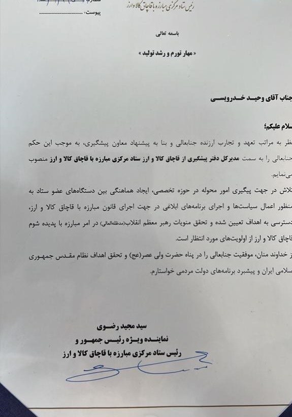 وی جایگزین امیر پرهام فر در ستاد مبازره با قاچاق کالا و ارز شده است.
