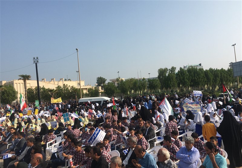 در این تجمع که در میدان رئیس علی دلواری بوشهر تشکیل شد کودکان بوشهری با سرود زیبای خود در وصف کودکان فلسطینی خواستار توقف سریع کودککشی در غزه شدند.