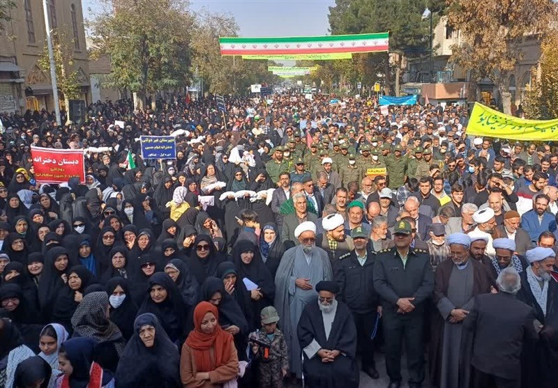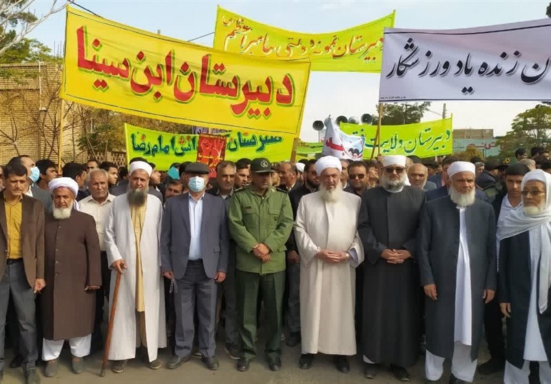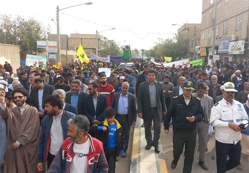 در این راهپیمایی اقشار مختلف مردم،طلبه،روحانیت،بسیجیان،بازاریان،مسئولان،دانش آموزان و فرهنگیان همگام باسراسرکشور به دشمنان قسم خورده نظام اعلام کردند که تا پای جان حافظ انقلاب و ارزشها و گوش به فرمان ولایت هستند و انقلاب و رهبری را دوست دارند و برای نابودی اسرائیل غاصب درصحنه حضور دارند و با تمام توان درکنار مردم مظلوم فلسطین هستند.