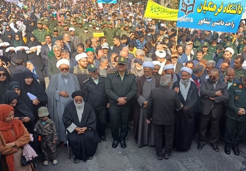 همچنین مردم شهرستان نیشابور و دیگر شهرستانهای خراسان رضوی نیز همزمان با سراسر کشور در تجمعاتی اعتراض آمیز نسلکشی و جنایات رژیم صهیونیستی را محکوم کردند.