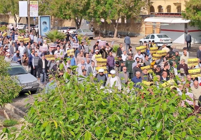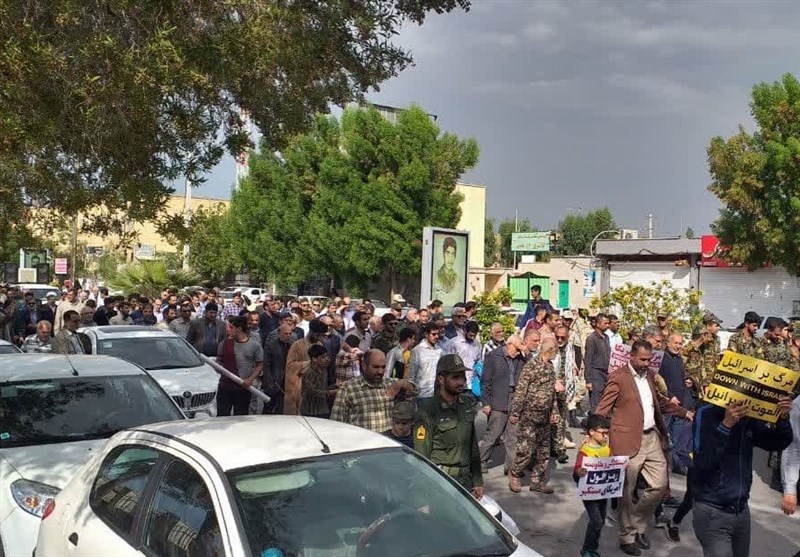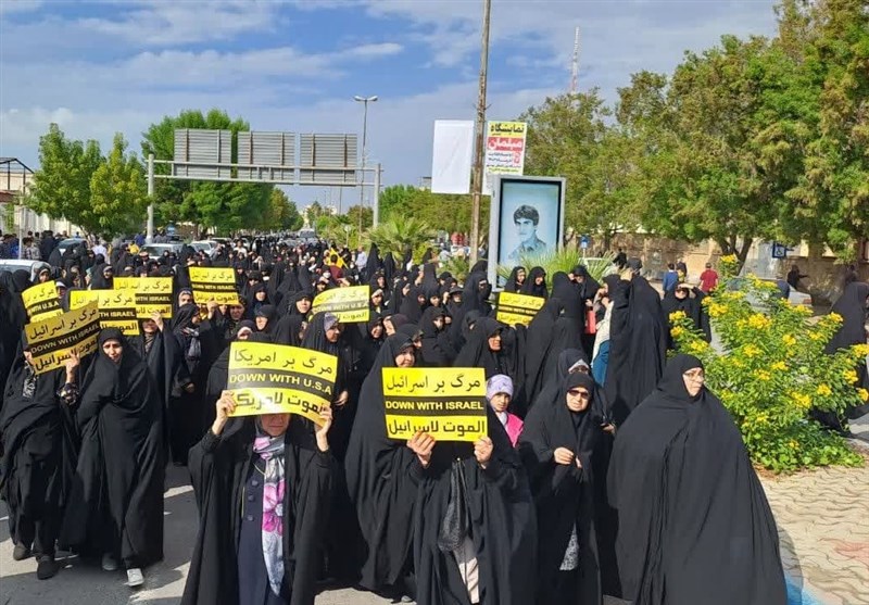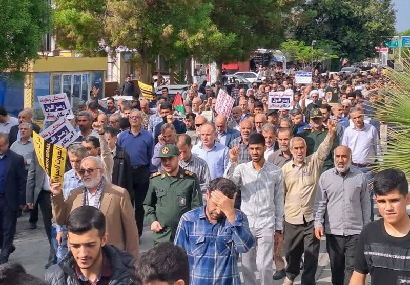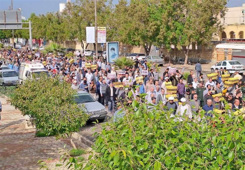 فریاد فلسطین پیروز است اسرائیل نابود است، صهیون جنایت میکند شیطان حمایت میکند از دیگر شعارهایی بود که امروز در مسیر راهپیمایی بوشهر طنینانداز شد..