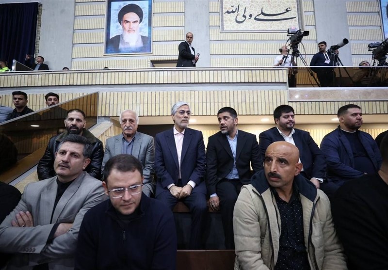 - کیومرث هاشمی وزیر و مهدی علینژاد معاون سابق وزارت ورزش از دیگر حاضران در سالن هستند.