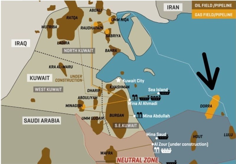 درحالی کویت در همکاری مشترک با عربستان، در حال تقسیم سهم ایران با سعودیها است و در اظهاراتی عجیب، این میدان مشترک گازی را میدانی کویتی ـ سعودی اعلام کرده است، که سوابق تاریخی مذاکرات ایران و کویت نشان میدهد در طول مذاکرات دو کشور از 60 سال پیش، بر سر تعیین مرزهای آبی و همکاری مشترک در برداشت از این منابع گازی، همواره سران دو کشور حق کشور مقابل را برای سهمداشتن در این منابع عظیم گازی بهرسمیت شناختهاند و تا اواخر قرن بیستم و رسیدن به سال 2000 نیز، سعودیها نقشی در این مذاکرات دوجانبه بین ایران و کویت نداشتند و این طرح سعودی، برای سهمگیری از منابع گازی این میدان مشترک بین ایران ـ کویت، از حدود سال 2000 آغاز شد.