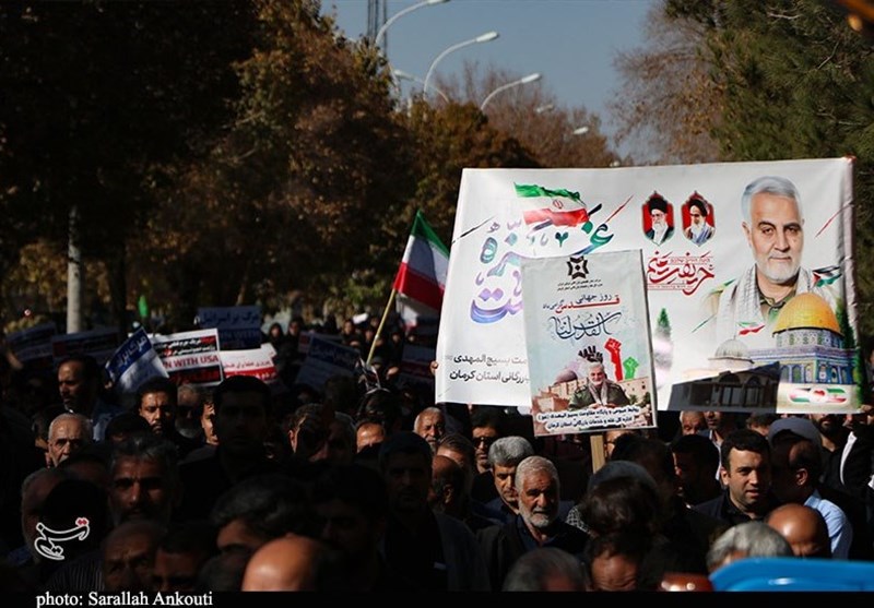 این راهپیمایی که از مصلی بزرگ امام علی علیه السلام کرمان تا میدان بسیج برگزار شد با فریادهای "مرگ بر آمریکا" و "مرگ بر اسرائیل" همراه بود.
