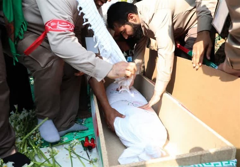 سردار عبدالرضا مراد حاجتی ضمن تشکر از مردم، کارگران، کارمندان و مدیران پتروشیمی که به استقبال این شهیدِ دانشآموز آمدند، افزود: نخستین پیکر مطهر شهید گمنام از 14 شهیدی که مهمان خوزستان بودند، در منطقه ویژه اقتصادی پتروشیمی در خاک وطن آرام گرفت و سایر شهدا از فردا در دیگر مناطق خوزستان طبق برنامه اعلام شده، تشییع و تدفین خواهند شد.