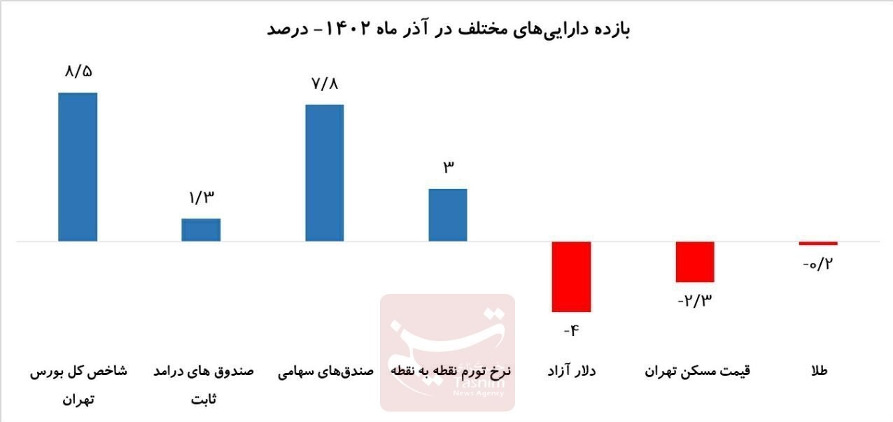 مرور این اعداد نشان می دهد که هر چند قیمت دلار در بازار غیر رسمی به صورت گسسته در حال افزایش بوده اما این دلیلی برای بازدهی مادام العمر آن نمیباشد. به طور مثال در همین آذر ماه سال 1402 بورس با 9 درصد بالاترین سود را داشته و صندوق های سهامی نیز با 8 درصد در رتبه بعدی قرار دارند. در همین ماه قیمت طلا و سکه ثابت بوده و بازدهی قیمت دلار نیز منفی ثبت شد. بنابراین هر زمان که وارد وازار ارز آن هم از نوع غیر رسمی شوید تضمینی برای سود نخواهد داشت و در همین آذر ماه فعالان بازار بورس بسیار بیشتر از دیگران بازدهی کسب کردند.
