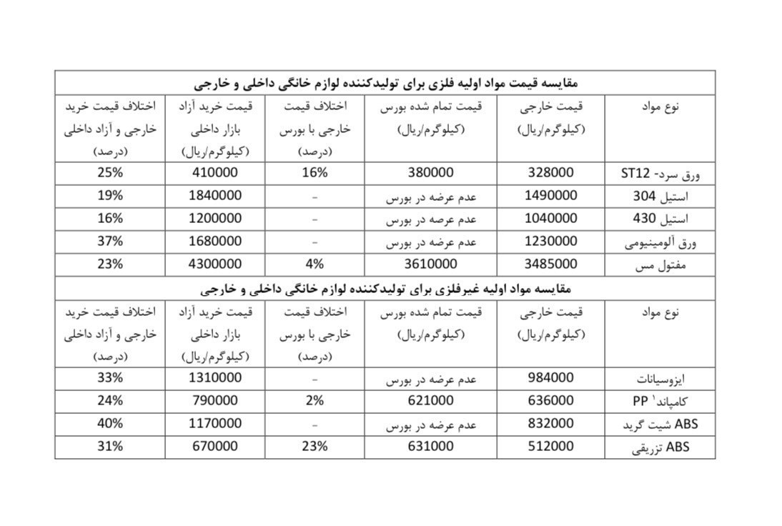 ورق سرد فولادی برای اینکه به دست تولیدکننده لوازم خانگی برسد، یک بار مسیر قیمت پایه با نرخ دلاری را طی میکند و وقتی ورق با این نرخ به بورس کالا عرضه شد در جریان کشف قیمت هم به علت عرضه محدود، بالاترین نرخ بر کالا اعمال میشود و در نهایت هم به علت همان عرضه محدود، تمام نیاز تولیدکننده از طریق عرضه بورسی تامین نمیشود و تنها یک راه گران آن هم خرید ورق از واسطهها پیش پای تولیدکننده قرار میگیرد. تفاوت نرخ بازار آزاد با نرخهای بورسی به اندازهای است که ورق سردی که تولیدکننده ایرانی از داخل خریداری میکند از نرخهای کشورهایی همچون چین و آلمان هم بالاتر است.