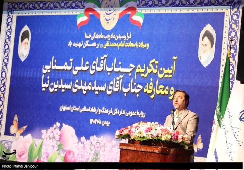 علی تمنایی، مدیرکل سابق فرهنگ و ارشاد اسلامی استان در این مراسم ضمن گرامیداشت فرا رسیدن ماه رجب و میلاد باسعادت حضرت علی(ع) گفت: اصفهان یک استان هنرپرور و هنرخیز است و همان طور که مقام معظم رهبری فرمودند در بحث علم، هنر، ادب، ایمان استان ویژه و در همه عرصهها پیشتاز است.
