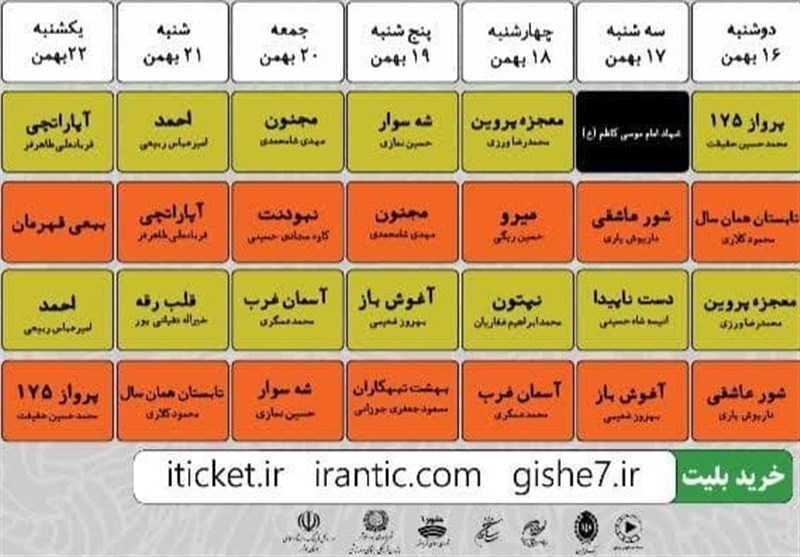 وی بیان کرد: 17 فیلم در موضوعات مختلف جامعه تا 22 بهمن در 27 سانس در ساعات 14:30 دقیقه، 17، 19:30 دقیقه و 22 به روی پرده خواهد رفت.