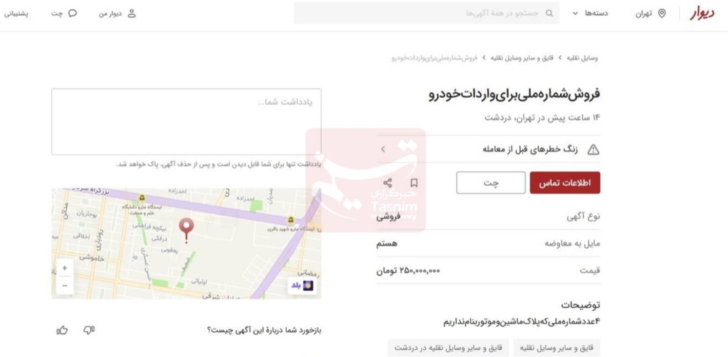 در یکی از این آگهی ها هزینه خرید شمارههای ملی برای ثبت نام در طرح خودروهای وارداتی 250 میلیون عنوان شده که این رقم البته متناسب با خودروها متفاوت است.