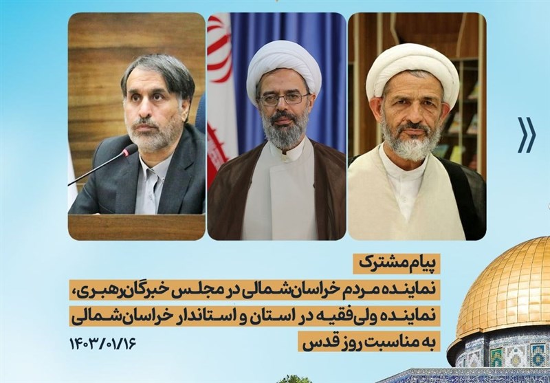 به گزارش خبرگزاری تسنیم از بجنورد، آیتالله فیاضی، نماینده مردم استان در مجلس خبرگان رهبری، حجتالاسلام والمسلمین نوری، نماینده ولیفقیه در استان و محمدرضا حسیننژاد، استاندار خراسانشمالی در پیامی مشترک روز جهانی قدس را گرامی داشتند و از عموم مردم برای شرکت در راهپیمایی بزرگ این روز دعوت به عمل آوردند.