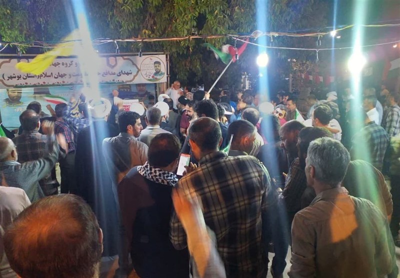 به گزارش خبرگزاری تسنیم از بوشهر، در پی حمله موفقیتآمیز موشکی و پهپادی سپاه پاسداران علیه اسرائیل غاصب و جنایتکار مردم همیشه در صحنه و ولایتمدار بوشهر بامداد امروز با تجمع در میدان قدس از عملیات نظامی سپاه پاسداران علیه مواضع اسرائیل غاصب حمایت کردند.