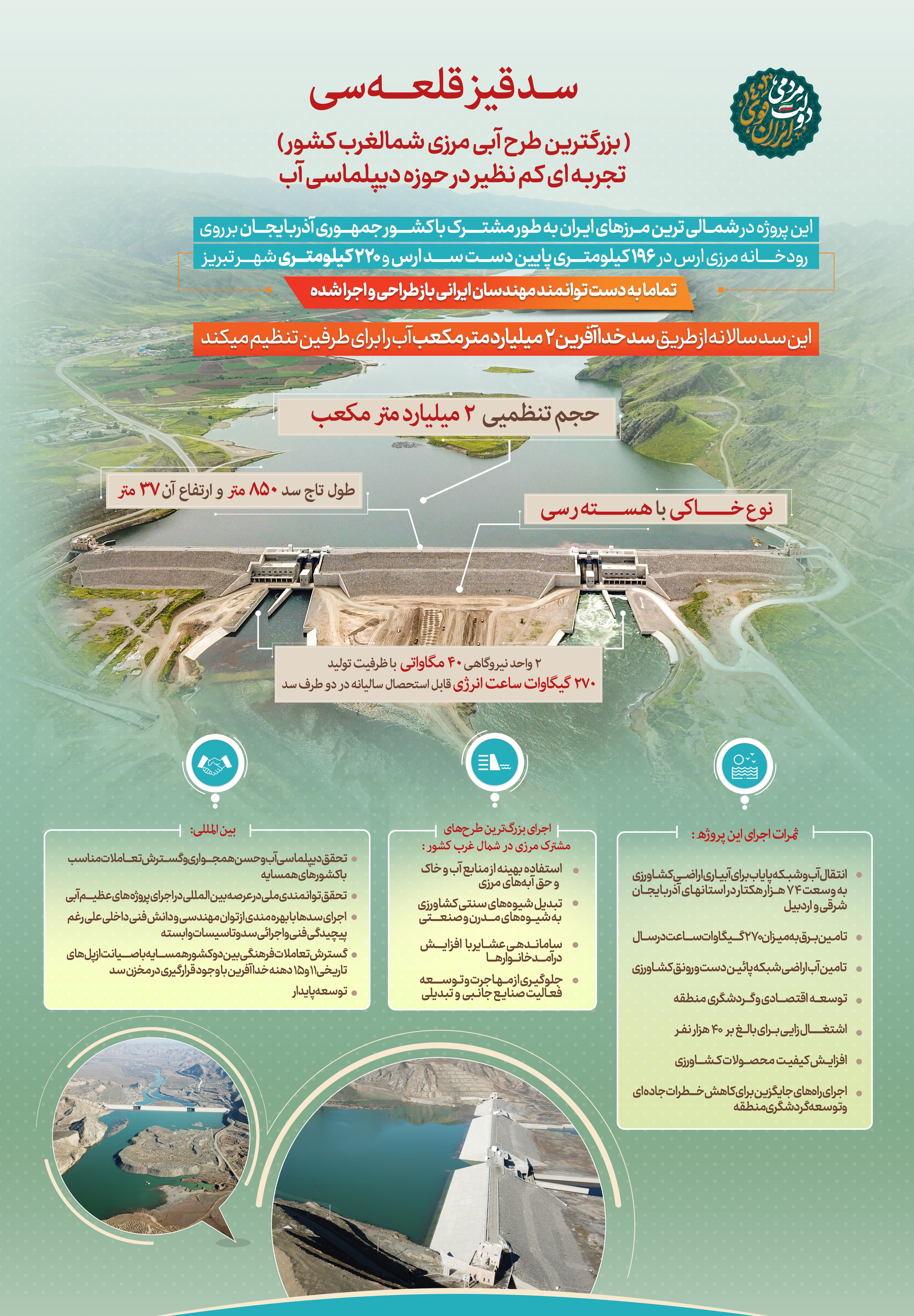 به گزارش خبرگزاری تسنیم از تبریز، سد «قیز قلعهسی» بخشی از طرح عظیم و ملی «سد خداآفرین» است که امکان بهرهبرداری کامل و آبگیری از این سد و همچنین بهرهمندی 74 هزار هکتار از اراضی کشاورزی منطقه را فراهم میکند.