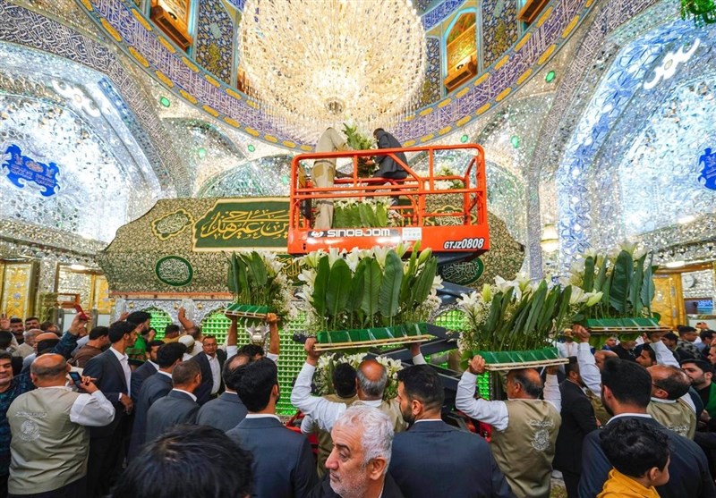 در ادامه تصاویری از مراسم تزئین و عطرافشانی در صحن مقدس علوی را مشاهده میکنید: