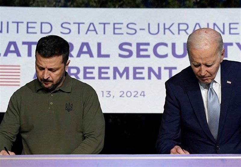 جو بایدن، رئیس جمهور آمریکا در یک کنفرانس مطبوعاتی بههمراه ولادیمیر زلنسکی، رئیسجمهور اوکراین اعلام کرد که توافقنامه امنیتی واشنگتن و کییف که در اجلاس گروه هفت (G7) در ایتالیا امضا شده، اعزام نیروهای آمریکایی به اوکراین را پیشبینی نکرده است.