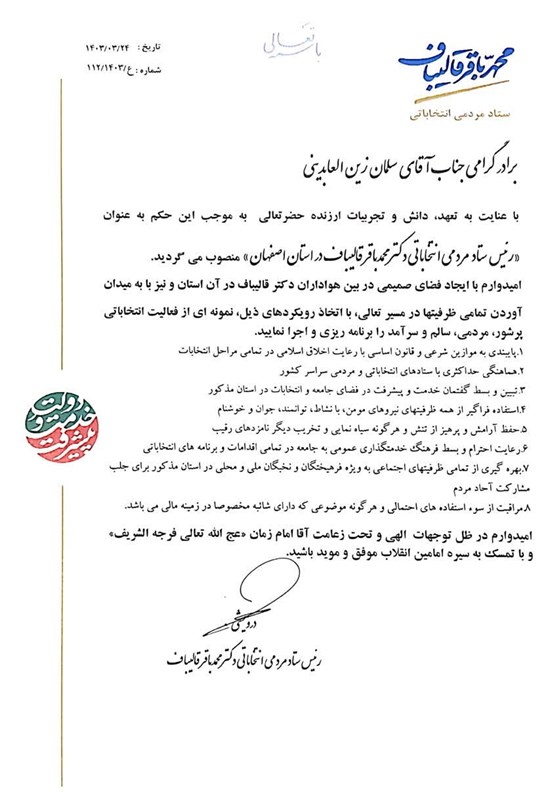انتصاب رئیس ستاد مردمی انتخاباتی قالیباف در اصفهان