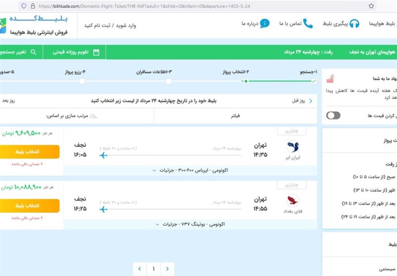 در این شرایط که فعلاً خبری از فروش بلیت پروازهای اربعین با نرخهای اعلام شده در سایت ایرلاینها و سایتهای مجاز نیست، یک سایت (bilitkade.com) اقدام به فروش بلیت این پروازهای با قیمتهای نجومی کرده است.