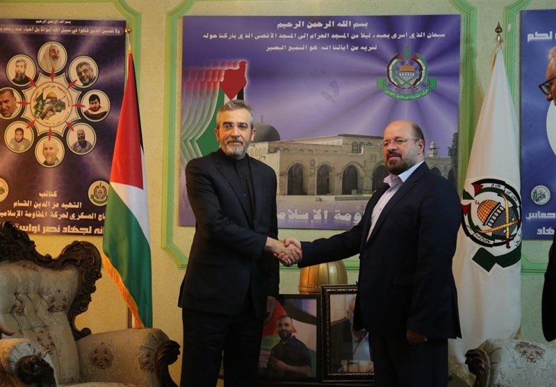 به گزارش گروه بینالملل خبرگزاری تسنیم، علی باقری سرپرست وزارت امور خارجه جمهوری اسلامی ایران با حضور در دفتر نمایندگی جنبش مقاومت اسلامی فلسطین- حماس در تهران، ضمن گرامیداشت یاد و خاطره شهید شیخ اسماعیل هنیه رییس دفتر سیاسی حماس، با خالد قدومی نماینده حماس در تهران گفتگو کرد.