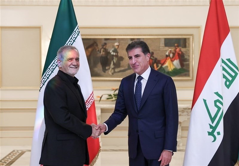 به گزارش گروه سیاست خارجی خبرگزاری تسنیم، نیچروان بارزانی، رئیس اقلیم کردستان عراق پس از دیدار با مسعود پزشکیان، رئیس جمهوری اسلامی ایران در مصاحبه با خبرنگاران گفت: ما در اقلیم کردستان عراق، مردم اقلیم، رهبران اقلیم، روسای دینی اقلیم همه خوشخال هستیم که آقای رئیس جمهور در چارچوب سفرشان به عراق از کردستان عراق هم دیدن کردند.
