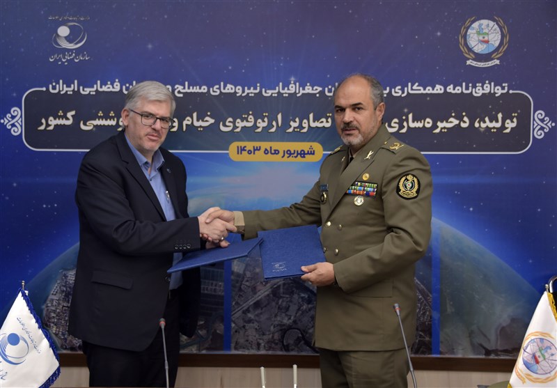 توافق نامه همکاری میان سازمان فضایی ایران و سازمان جغرافیایی نیروهای مسلح با موضوع استفاده از داده‌های ماهواره خیام برای تولید محصولات ارتوفتو و نقشه‌های پایه به‌روز شده امضا شد.