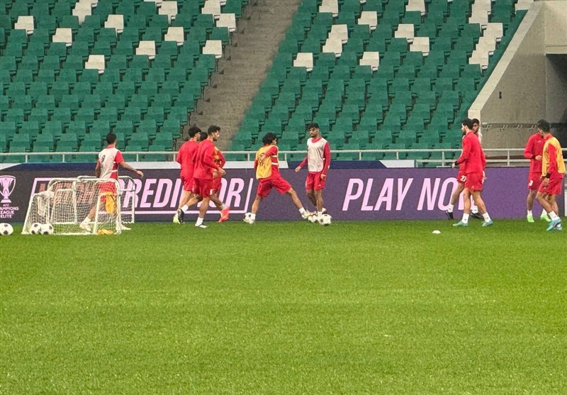 بازیکنان ابتدا در گوشهای از زمین به کارهای کششی مشغول شدند و سپس به مرور کارهای ترکیبی پرداختند.