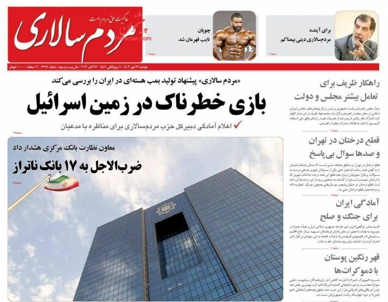تصاویر منتخب صفحات نخست روزنامه‌های دوشنبه 23 مهر ماه منتشر شد.