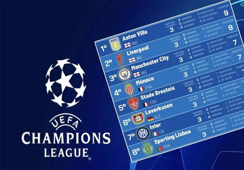 در پایان هفته سوم، استونویلای انگلیس که سومین برد متوالیاش را در بازی خانگی برابر بولونیا کسب کرد با 9 امتیاز و تفاضل گل بهتر نسبت به لیورپولی که آن هم 9 امتیازی است در صدر قرار دارد. پس از لیورپول که تنها به سبب یک گل خورده بیشتر نسبت به استونویلا در جایگاه دوم ایستاده، هفت تیم 7 امتیازی بر حسب تفاضل گل در جایگاههای سوم تا نهم قرار دارند که به ترتیب عبارتند از منچسترسیتی، موناکو، برست، لورکوزن، اینتر، اسپورتینگ لیسبون و آرسنال.