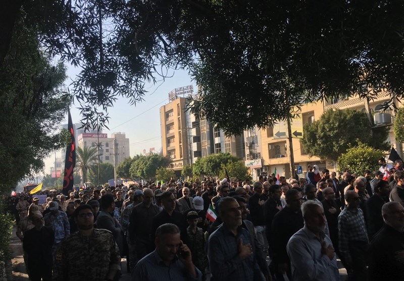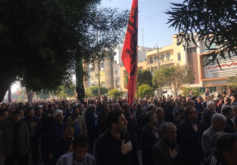 در این مراسم که اقشار مختلف مردم شامل کودک، نوجوان، جوان، پیر و زن مرد حضور حماسی داشتند شرکت‌کنندگان با شعارهای حسین حسین شعار ماست شهادت افتخار ماست، این گل پرپر از کجا آمده از سفر کربلا آمده، مرگ بر آمریکا، مرگ بر انگلیس، مرگ بر اسرائیل شهدای والامقام را تا مصلا جمعه بوشهر تشییع کردند.