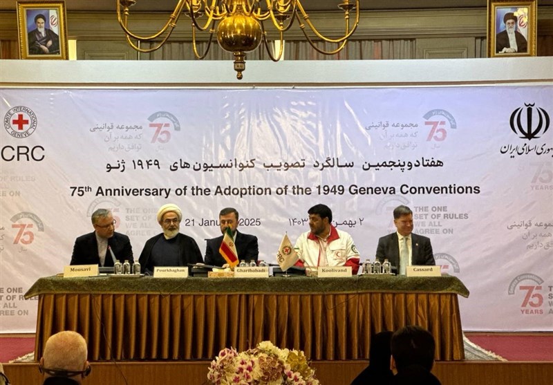 در ابتدا سید علی موسوی، مدیر حقوق بین‌الملل وزارت خارجه گفت: 75 سال است که دولت‌ها و سازمان‌های بین‌المللی در مسیر رعایت هنجارهای بشردوستانه تلاش می‌کنند. هنوز جامعه جهانی نگران قساوت‌های ناشی از جنگ است. در طول یک سال گذشته جامعه جهانی شاهد جنایات رژیمی مجعول علیه ملت فلسطین بوده است و نگران کننده‌تر از آن حمایت‌های کشورهای غربی است که از این رژیم به عمل می‌آورند.